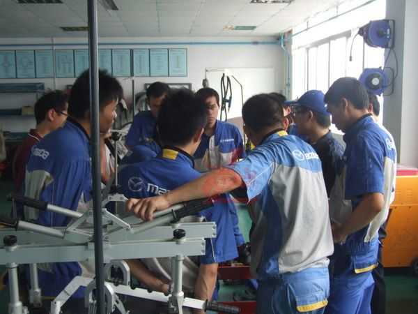 全國一汽馬自達各服務店都配備具有國際領先的鈑金維修工具設備,為了最大限度地利用這些高效率的工具設備,提升鈑金作業(yè)人員的技能及素養(yǎng),并為馬自達系統(tǒng)的售后服務體系打造一支鈑金維修技術過硬的隊伍。經過一汽馬自達集團服務部統(tǒng)籌與組織,來自全國各地一汽馬自達服務店D0910班的第十期培訓學員,于2009年10月14日到珠海接受鈑金技術提升培訓。