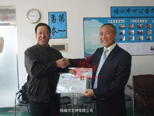 龍神總經(jīng)理彭小龍為老師頒發(fā)汽車(chē)鈑金與噴漆修復(fù)技術(shù)合格證書(shū)
